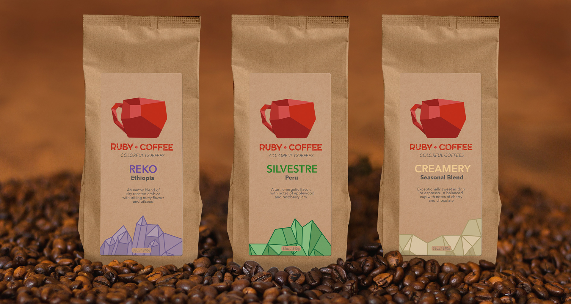 Ruby Coffee Roasters needed new packaging designs for their holiday lineup. I created these simple, sustainable designs.